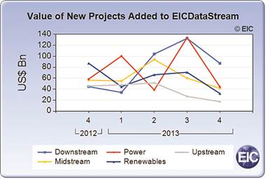 - There have been 91 new projects in the downstream sector totalling US$87.2 billion in Q4 2013.